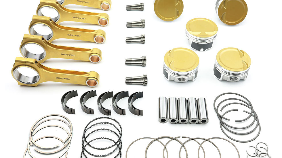 The JE Pistons-piston in this kit are manufactured as custom piston especially for us according to our specifications. Specially reinforced ring zones and an extra coating make them the perfect piston for the 5-cylinder aluminium block. For extreme performance, the piston also come with the High Boost piston pins. At the same time they are still quite light. This combo is of course perfect for motorsports. With the piston comes everything you need for the installation: bolts, rings and clips.