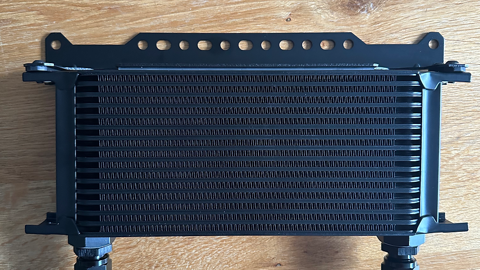 The thermostat also allows us to run a larger cooler with no drawbacks such as warm up issues, this has allowed us to use a larger surface area cooler. Our oil coolers not only have great cooling properties they also ensure air passes through the cooler effectively which is so important on these cars since we are placing the oil cooler infront of the rad and air intercooler!